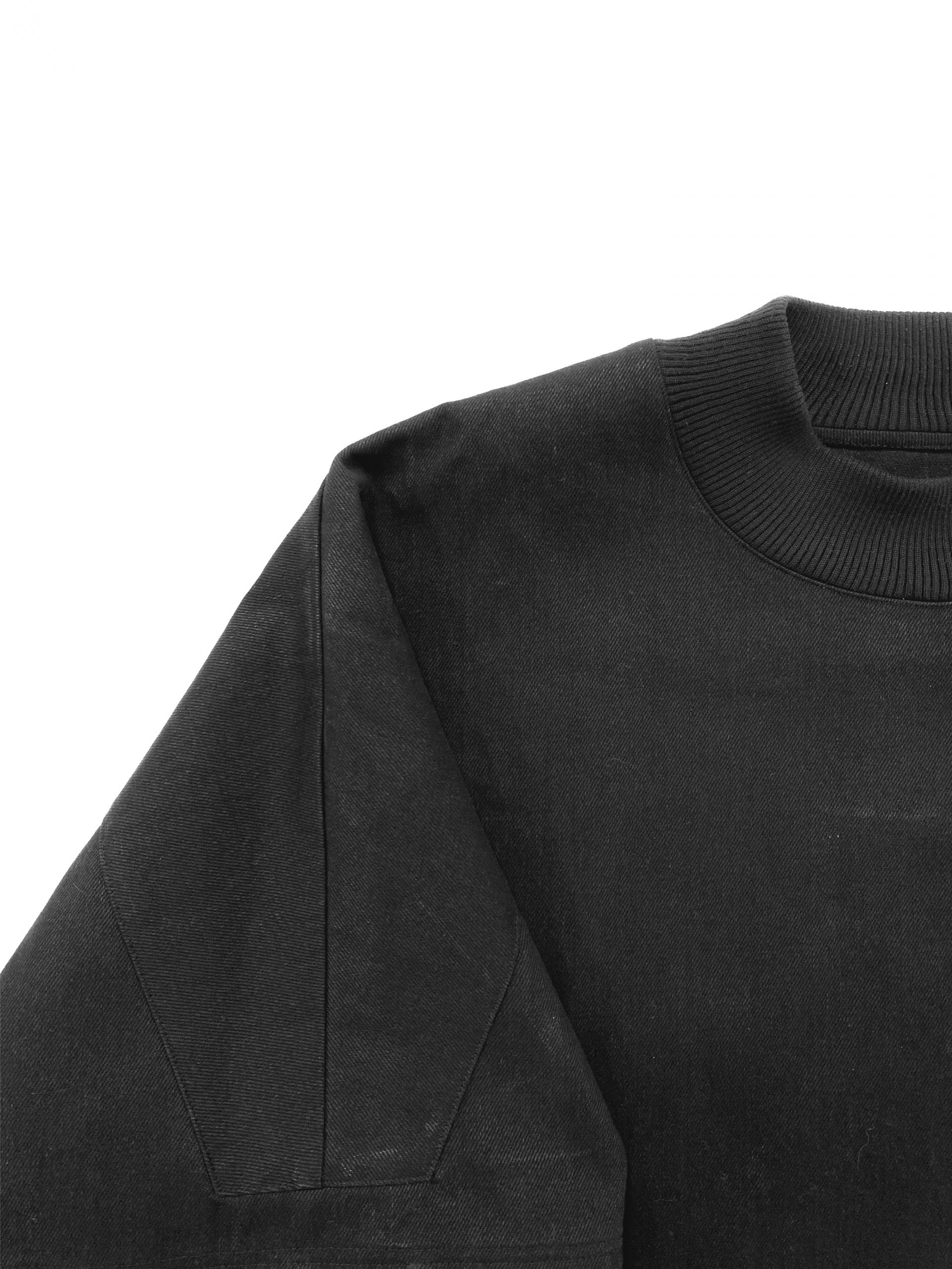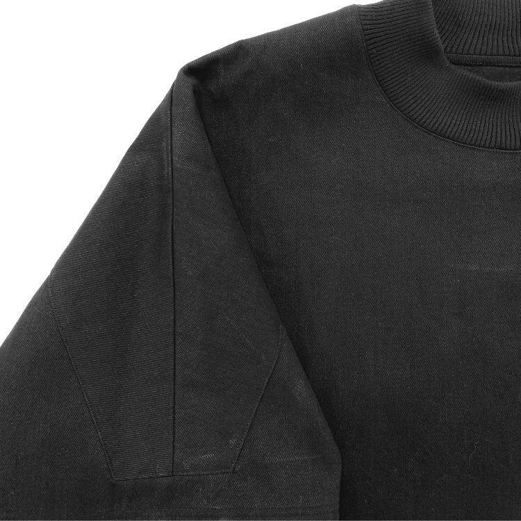 Denim Half Sleeve Crop Mockneck